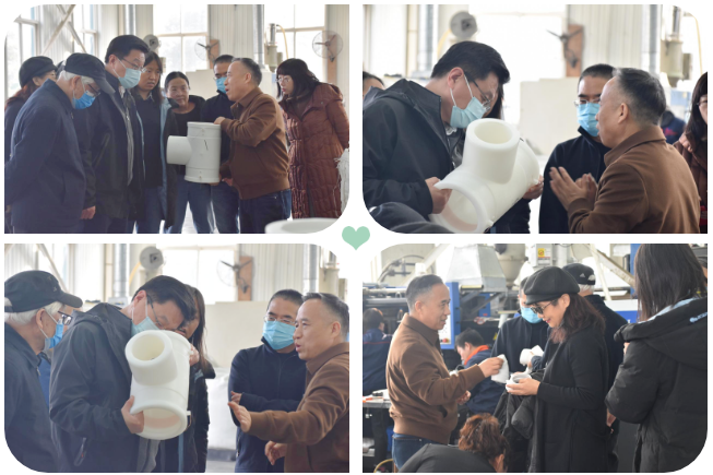 由董事長和銷售總監帶領,先后參觀了屈彈電熔管件生產工藝和EEN-HDPE同層排水的實驗平臺,各設計師及領導對我司產品及技術有了深入了解,并針對具體問題進行了現場交流。