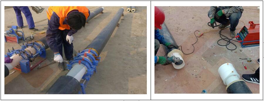 1、熱熔對接,操作要點:管材管件達到加熱時間后,立即利用熱熔機將管材管件無旋轉地對接,保持180s使管材管件完全粘合,待冷卻后松開熱熔機,主要針對dn63以上管材、管件。